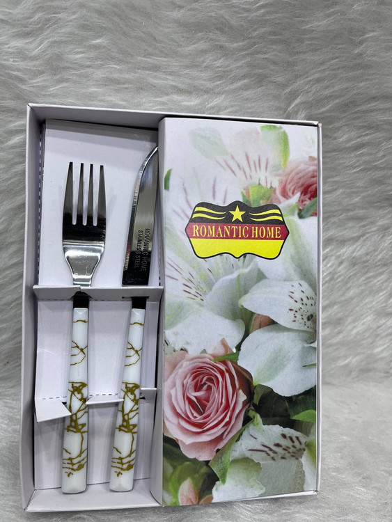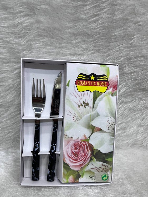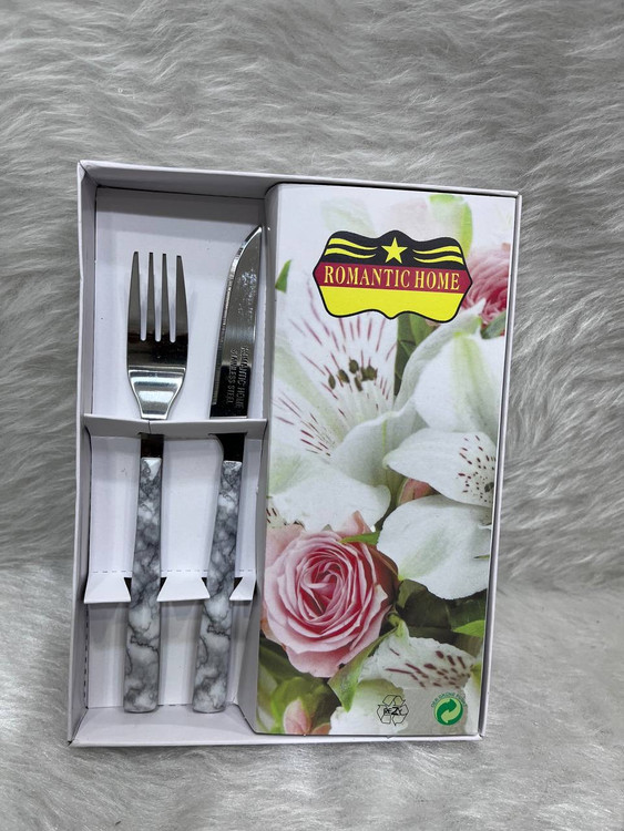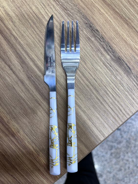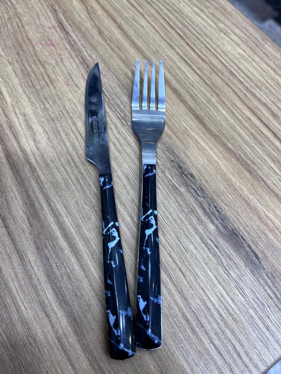 کاردوچنگال دسته پلاستیکی طرح سرامیکی تیغه استیل