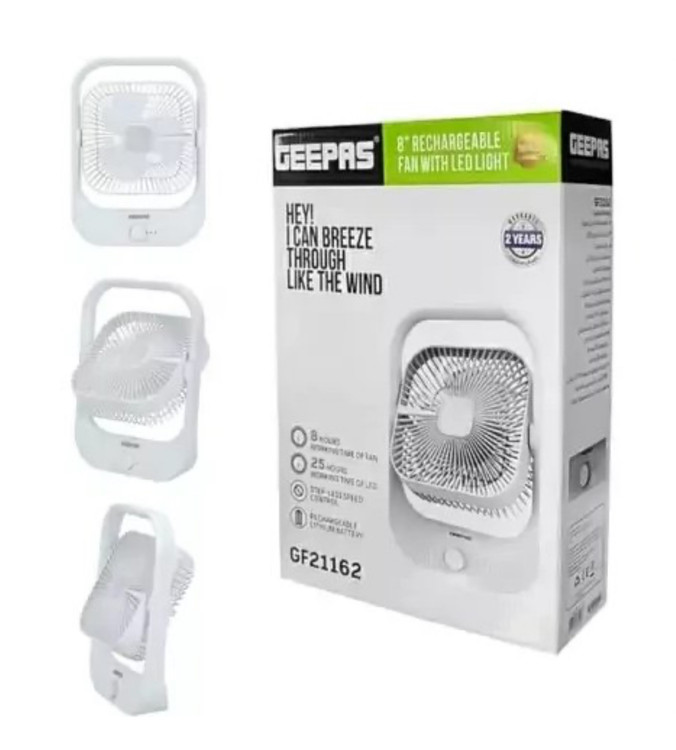فن شارژی Geepas با نور LED می تواند همراه کامل شما در فصل گرما باشد. می توان از آن برای فعالیت های خنک کننده خانه و محل کار استفاده کرد. این یک فن کوچک اما قدرتمند است که به راحتی قابل استفاده است. در بالاترین گزینه جریان هوای قوی ایجاد می کند! با سرعت های قابل تنظیم، به شما این امکان را می دهد که نیازهای خنک کننده خود را با حداقل و حداکثر سرعت سطح برآورده کنید. سرعت مناسب فن را با چرخاندن مکرر دکمه سرعت تنظیم کنید. همراه با محافظ فن با کیفیت بالا، از ایمنی انگشتان کودک شما اطمینان حاصل می کند. فن شارژی Geepas با نور LED همچنین دارای چراغ شب LED و ورودی 5 ولت خورشیدی DC است.